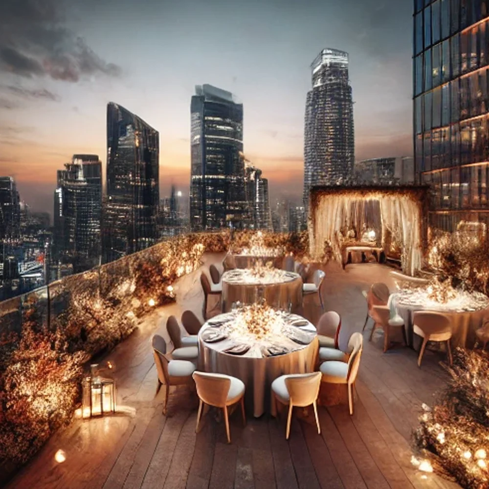 Auf dem Dach gelegen, bietet die Event Tempel Terrasse Platz für 180 Personen. Sie eignet sich hervorragend für kleinere Events und Hochzeiten, inklusive freier Trauungen.